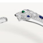 - 30 sapphires and 647 brilliant-cut diamonds totaling 7.56 carats (for size 17)